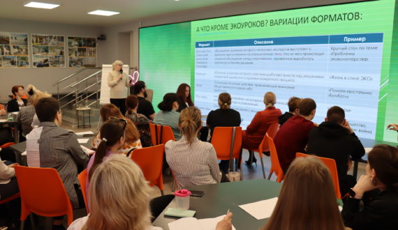 «В отличие от экологического мероприятия, в экопросветительском событии акцент должен быть именно на просветительстве, на информации», – подчеркнула в своем выступлении Екатерина Бакеева, преподаватель авторского курса «Экопросветитель», руководитель Центра экологических инициатив «Эйва», автор грантовых заявок-победителей Всероссийских конкурсов молодежных проектов.