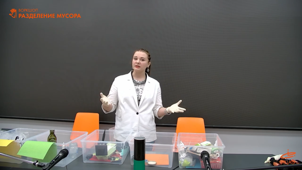 Экспертом воркшопа выступила Мария Белова, эколог, кандидат биологических наук, доцент кафедры «Экологии» СГТУ им. Ю.А. Гагарина. Она объяснила, что нужно смотреть на маркировки, которые стоят на этикетках, и правильно утилизировать предмет после использования. Для каждого вида пластика тоже есть отдельный международный символ, согласно которому можно понять, использовать вторично это пластиковое изделие или нет, чем опасны батарейки и зачем их нужно собирать отдельно от бытовых отходов и сдавать на переработку, а не выбрасывать с общим мусором.