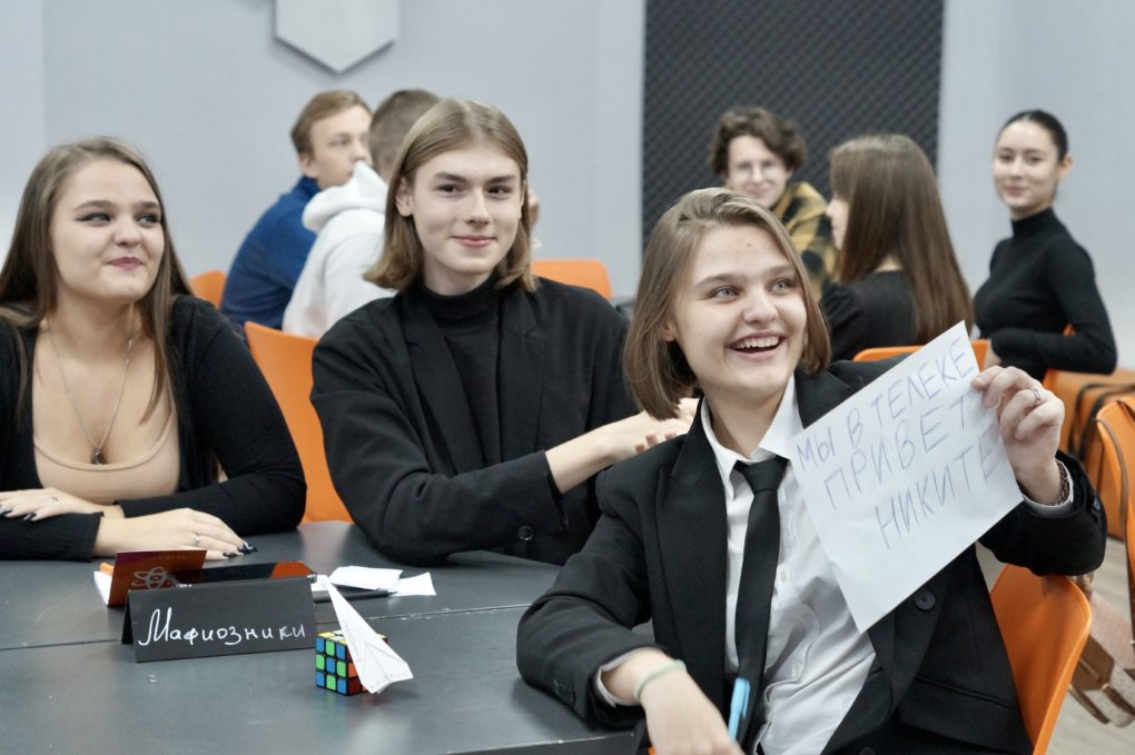 Как и на играх турнира «BrainShaker. Юниоры», команды уже традиционно обменивались приветствиями и шуточными объявлениями, написанными на бумаге.