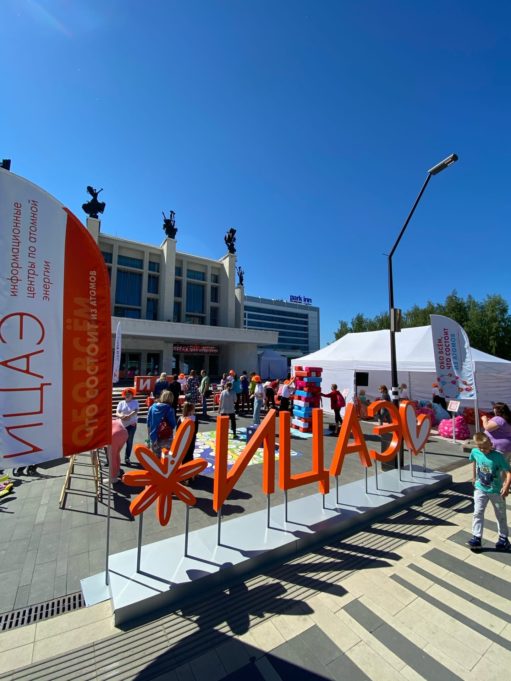 На научной площадке Информационного центра по атомной энергии участники мероприятия сражались в настольные и напольные игры сети: тренировали память в «Атомном мемо», восстанавливали историческую цепочку событий в «Хронографе», пытались разгадать «тайны атома» и не уронить «Атомную дженгу». Самые юные посетители «лужайки» могли раскрасить атомный город и посмотреть на уютных пуфах серию мультфильмов «Фиксики» о радиации. Особый интерес гостей вызвала станция «Звуки стройки», на которой нужно было по звуку угадать тот или иной процесс, происходящий при строительстве АЭС: