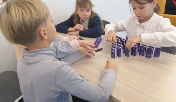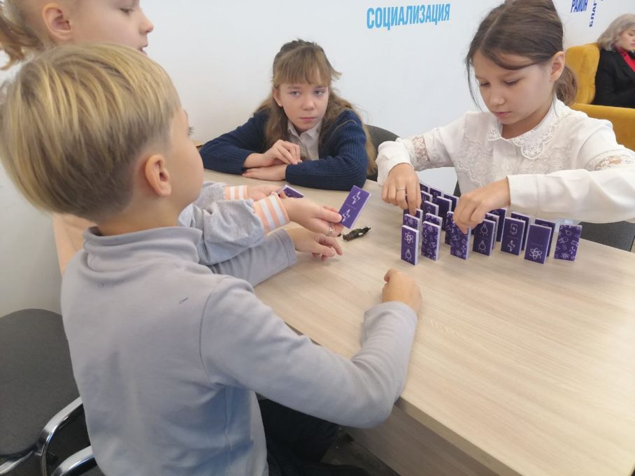 Ученики начальной школы разбирались в том, что такое цепная реакция. «Потеря равновесия одной костяшки домино приводит к падению всей конструкции, а плохое настроение способно заразить всю школу» — к такому выводу пришли ребята. Школьники проводили эксперименты по выстраиванию разных конструкций из домино, а затем познакомились с принципом работы атомного реактора и делением ядер урана-235.