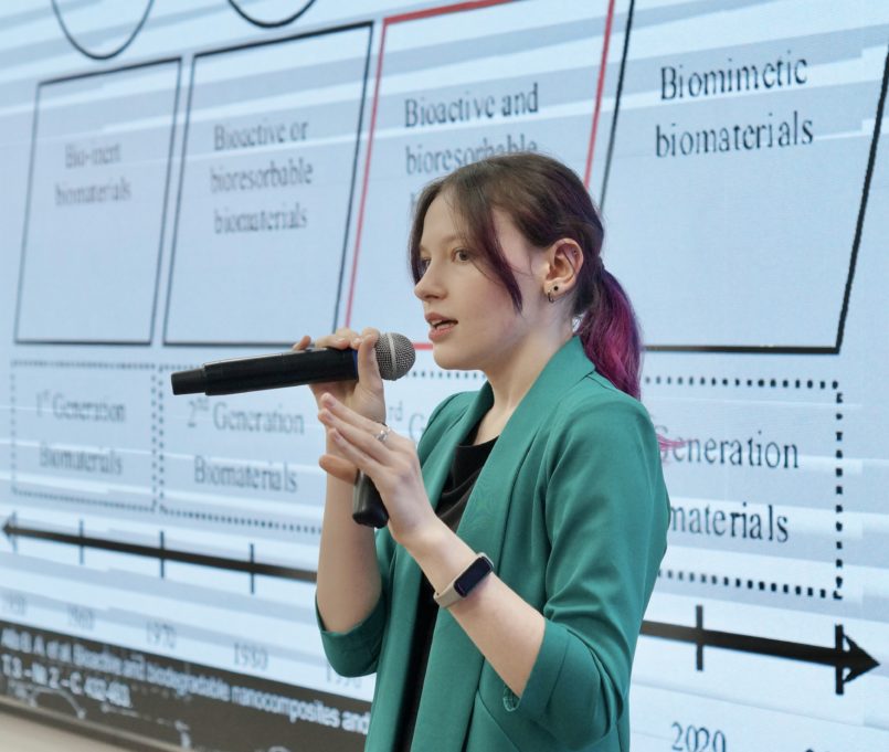«Типичный биоактивный имплантат состоит из клеток (часто стволовых), скаффолда, формирующего очертания восстанавливаемой ткани (органа), и различных «сопровождающих» веществ для максимально благоприятной среды для клеток восстанавливаемой ткани. В качестве костной ткани и имплантов используются высокоэффективные полимеры, такие как полиэфирэфиркетон (PEEK) и полиэфиркетонкетон (PEKK). В феврале 2013 года американскому пациенту установили 3D-имплантат части черепа, качество которого было одобрено FDA. 75% черепа пациента теперь составляет имплант», – рассказала Анастасия.