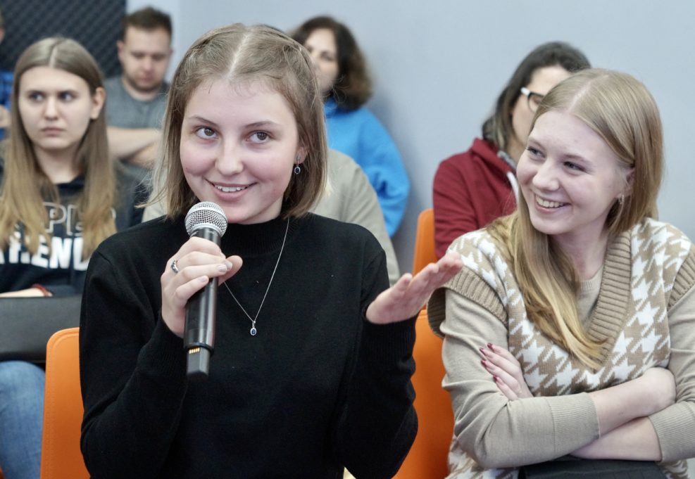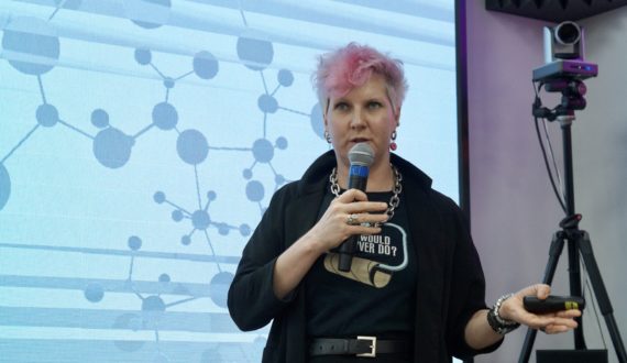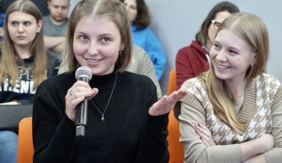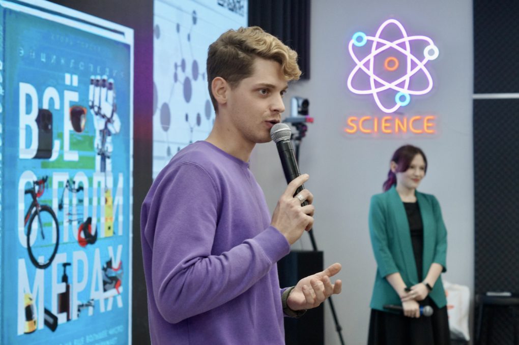 Главным событием вечера стала премьера в Воронеже научно-популярного ток-шоу «Физики и лирики». В начале Анастасия Дубовицкая, аспирант медико-биологического факультета ВГУ, лаборант-исследователь кафедры биофизики и биотехнологии, рассказала о полимерах с научной точки зрения. Она обсудила с гостями центра роль полимеров в современном мире, а также, из чего «печатают» органы, что используется при создании лекарств, какими свойствами должны обладать данные материалы.