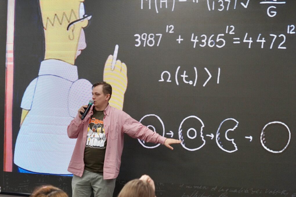 Андрей Дорофеев рассказал о кино, которое доказывает, что цифры и исчисления интереснее любых спецэффектов. Кроме того, спикер рассказал о самых интересных эпизодах мультсериала «Симпсоны», в которых фигурируют важнейшие математические идеи – от числа Пи и бесконечности до происхождения чисел и самых сложных проблем, над которыми работают современные математики.