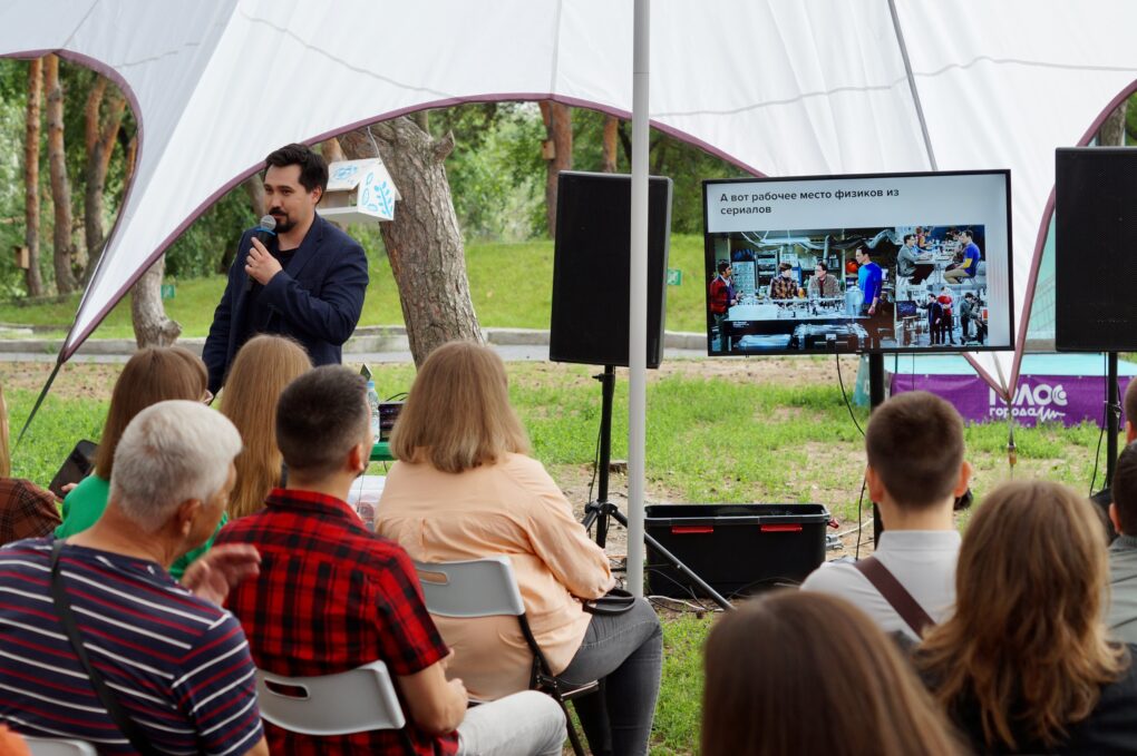 Кандидат физико-математических наук, заведующий лабораторией и старший преподаватель на кафедре физики твердого тела и наноструктур физического факультета ВГУ Константин Барков представил мемы о работе физиков. Согласно одному из них, давно пора разрушить стереотипное видение человека этой профессии. Гости узнали об условиях работы специалистов в настоящее время, оборудовании и экспериментах, которые проходят в лабораториях.