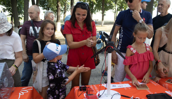 Внимание как юных, так и взрослых гостей площадки привлёк мастер-класс «Альтернативные источники энергии». Каждый желающий попробовал самостоятельно выработать электричество, а также познакомился с работой солнечных батарей и ветряных установок.