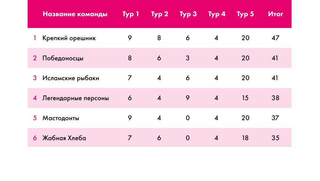 Поздравляем всех участников турнира с замечательной игрой и приглашаем 6 команд, набравших наибольшее количество баллов в отборочном этапе, на полуфинал, который пройдёт 12 апреля в 19 городах России и в Минске.
