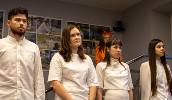 Эксперты и любители-театралы из Центральной муниципальной библиотеки имени Н.А. Некрасова показали утончённую театральную постановку. Грустная поэзия Вырыпаева была дополнена зрительными образами, в том числе белыми костюмами актёров, а многочисленные повторы заставили зрителей задуматься о философской концепции жизни и смерти, эмоций и бесчувственности.