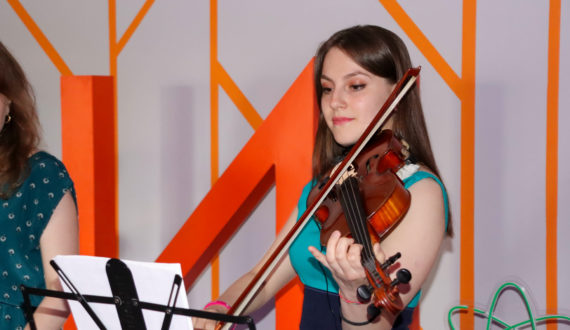 Гости ИЦАЭ попали на выступление ижевского скрипично-вокального дуэта «Мичиган». Участницы музыкального коллектива Елена Лаврова и Мария Драницина исполнили джазовые, авторские и зарубежные хиты.