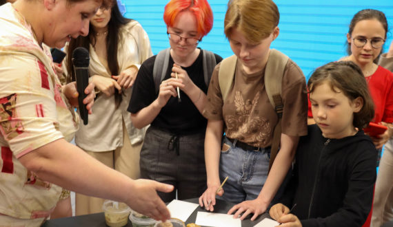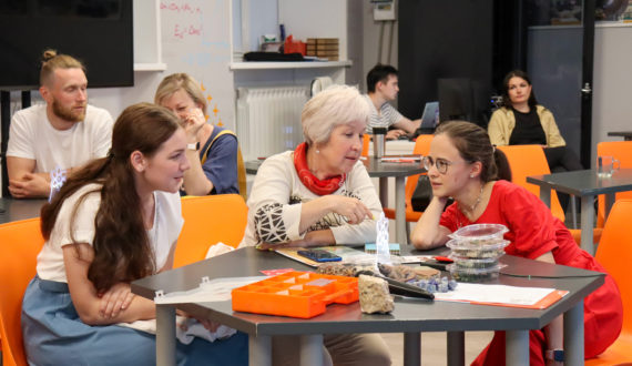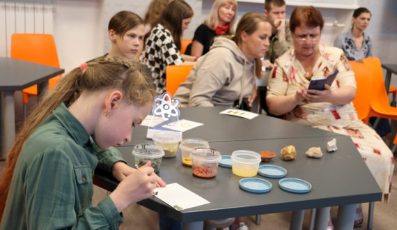 Анастасия Нопина рассказала, что выступать перед публикой не сложно, но волнительно. «Заняться исследовательской работой про волконскоит захотелось после общения с педагогом в рамках уроков по краеведению. Со мной сегодня пришли школьные подруги, которые тоже участвуют в исследовательской работе, но ещё не так давно, как я», — сказала Настя после своего выступления с Еленой Григорьевной. Девочки отметили, что формат мероприятия понравился. Презентация, натуральные камни, рисование минеральными красками – всё оказалось очень занимательно. Школьницы посещают уже второе мероприятие от ИЦАЭ Ижевска и пообещали прийти на следующий «ИЦАЭ OPEN».