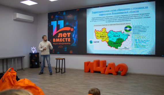Лекцию о переработке отходов провёл Юрий Самодуров, заместитель директора Департамента природопользования Владимирской области. Спикер рассказал о территориальной схеме региональных операторов по обращению с отходами, сортировочных пунктах в области и раздельном накоплении твёрдых коммунальных бытовых отходов.