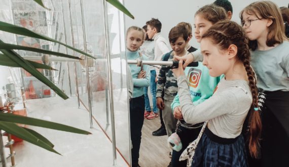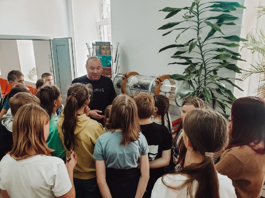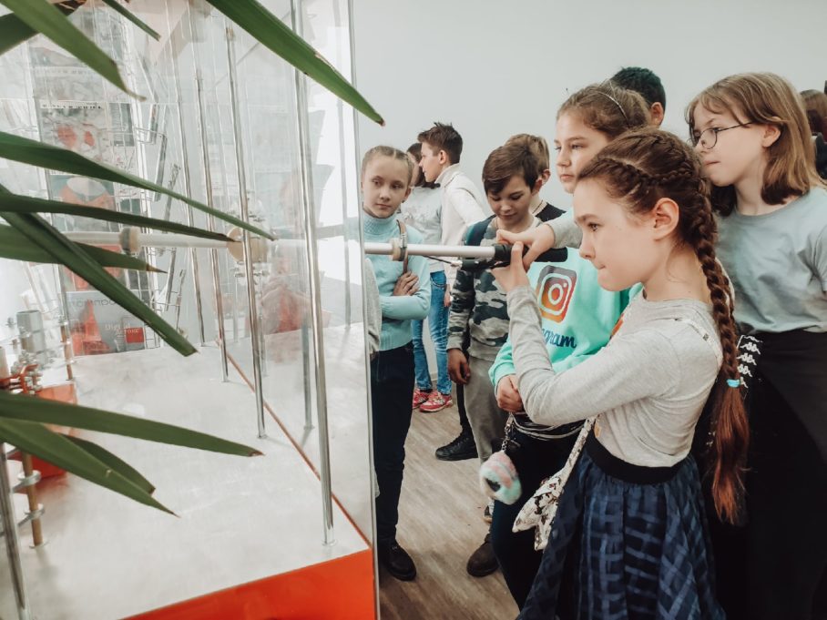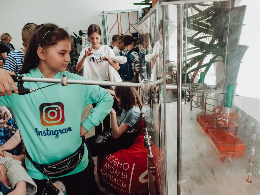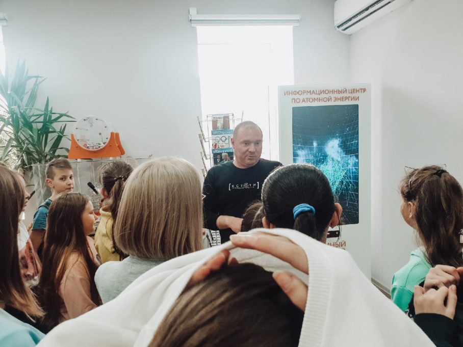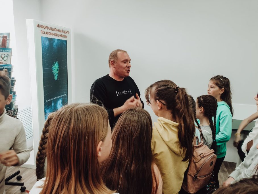 На экскурсии в фойе центра дети познакомились с работой его экспонатов. Они увидели, как работает система защиты на АЭС, узнали, для чего нужна центрифуга, а также измерили радиационный фон своих смартфонов, умных часов, пеналов и других вещей с помощью счётчика Гейгера.