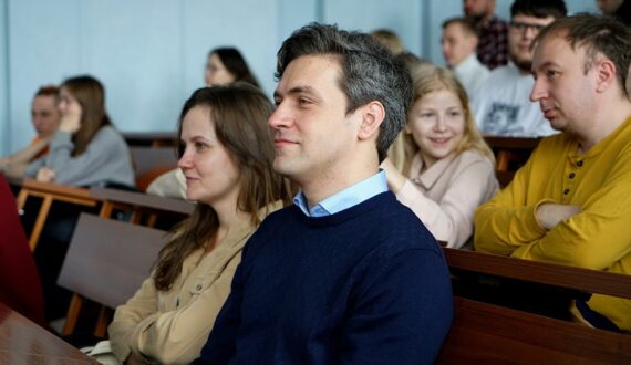 Дмитрий Эпштейн выступил с лекцией «Все мы состоим из звёзд», где рассказал о происхождении веществ во Вселенной. На лекции собрались преподаватели, студенты, сотрудники ВГУ вместе с детьми. Эпштейн подробно объяснил механизм возникновения многообразия веществ во Вселенной, подчеркнув ключевую роль звёзд в этом процессе.