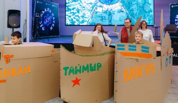Первая часть праздника была посвящена единственному в мире атомному ледокольному флоту. Также в этом году свое 500-летие отмечает Северный морской путь (СМП) — наиболее короткий путь через льды в Азию. Вооружившись картоном и канцелярскими принадлежностями, участники конструировали свой собственный, уникальный ледокол. «Мы строили атомный ледокол «Ямал», который знаменит своей «улыбкой». Оказывается, в 1994 году, после концерта детей на Северном полюсе, на носу ледокола нарисовали широкую улыбку. Этот рисунок стал визитной карточкой судна и символом Арктики, поэтому его не стали закрашивать. И мы тоже изобразили на нашем ледоколе знаменитую улыбку!», — поделилась впечатлениями Марина Сычёва, участница мастер-класса.