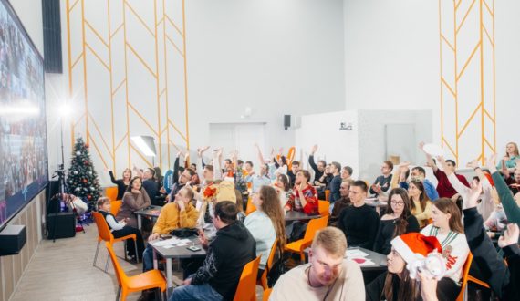 Последняя игра года прошла в новогодней атмосфере. Ощущение праздника создавали тематические костюмы и специальный дизайн игры, новогодняя музыка и открытки, на которых участники писали поздравления друг другу. А ещё большинство вопросов было связано с приближающимся Новым годом.