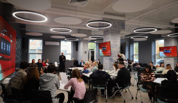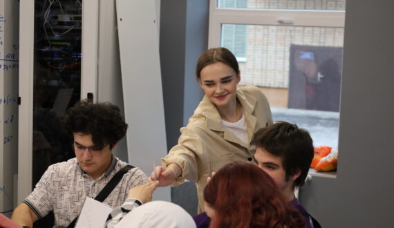 «Огромное спасибо ИЦАЭ, что приняли нас сегодня. Благодаря вашим возможностям, энергии, креативу, это получилось очень современно, молодёжно и весело. Конечно, большое спасибо нашим студентам. Такой формат видеопоздравлений был интересен. Каждая группа что-то подготовила и это было очень приятно. Здорово, что мероприятие началось с чего-то такого душевного и креативного. Потом мы чуть-чуть подискутировали со студентами, но в итоге согласились. Дебаты – очень хороший формат. Уверена, что нашим студентам было полезно прокачать некоторые компетенции и навыки защиты своей позиции. Интеллектуальная игра «Адреналин» стала для нас уже традиционным форматом. Были сложные вопросы, но мы справились. Студенты наши победили и это замечательно. Пускай они будут умнее нас, ведь ради этого мы и работаем», — поделилась впечатлениями от вечера ректор СГТИ Екатерина Колесникова.