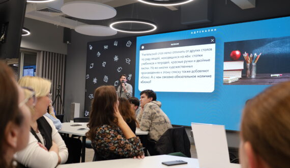 В завершение вечера состоялась интеллектуальная игра «Адреналин: день учителя». В этой игре результат зависел не только от знаний, но и от умения рисковать и правильно оценивать свои силы. На старте у каждой команды было 100 баллов. Команда сама определяла «стоимость» вопроса, зная его тематику. Если был дан верный ответ, команда получала поставленные баллы, при неверном ответе баллы вычитались. Основная задача в борьбе за победу — сохранить как можно больше очков, а если получится, приумножить.