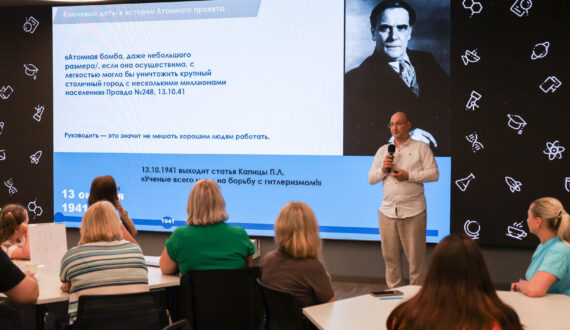 Ключевым событием вечера стала лекция «Атомный проект» Александра Мамкина — кандидата педагогических наук, ведущего сотрудника группы сопровождения музейного комплекса АО «ГНЦ РФ-ФЭИ». Он подробно рассказал об атомном проекте, охватив ключевые аспекты создания атомной энергетики и ядерного вооружения — от фундаментальных физических открытий до практических достижений современности.