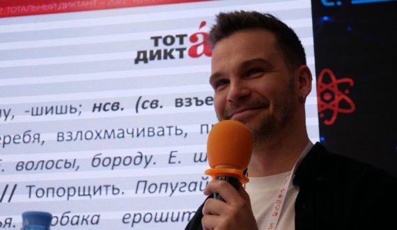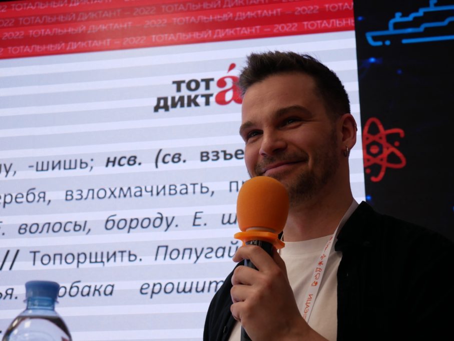 В Петербурге диктующим стал радиоведущий и музыкант «Нового радио» Станислав Спасский. Многие пришли в ИЦАЭ повторно, так как писали диктант в прошлом году, и очень понравилась площадка. Дмитрий Меркушев, участник Тотального диктанта, поделился своими впечатлениями: «В диктанте я участвую уже второй год, и мне очень нравится подход и организация мероприятия. Первый год писал диктант в Москве, в этом году в Петербурге. Не каждый день можно проверить свои силы. Прошлогодний текст показался очень сложным, а сегодняшний такой душевный. Надеюсь, хотя бы на 4, на 5 не претендую».