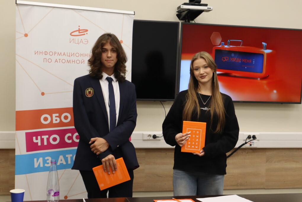 «Убеди меня» – совместный проект сети ИЦАЭ и Корпоративной Академии Росатома. Формат проекта – соревнования по дебатам, в ходе которых команды отстаивают свои позиции, размышляя на заданную тему и стараясь убедить судей и зрителей в своей правоте с помощью аргументации, личной харизмы и находчивости.