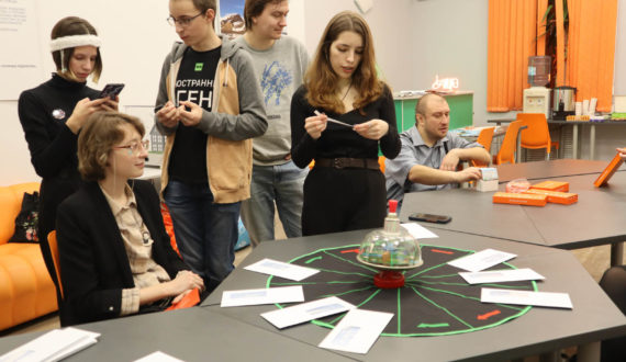 Открыла программу викторина «Физика для чайников» — беспроигрышная лотерея, в которой гости ИЦАЭ могли получить фирменные сувениры, отвечая на вопросы, посвящённые самым значимым событиям уходящего года.