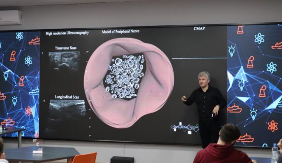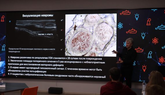 Профессор Дмитрий Дружинин, доктор медицинских наук и невролог, один из ведущих специалистов страны по УЗИ-диагностике и нейрофизиологической диагностике повреждений периферической нервной системы, прочитал лекцию про разнообразные травмы, повреждения и заболевания периферических нервов.