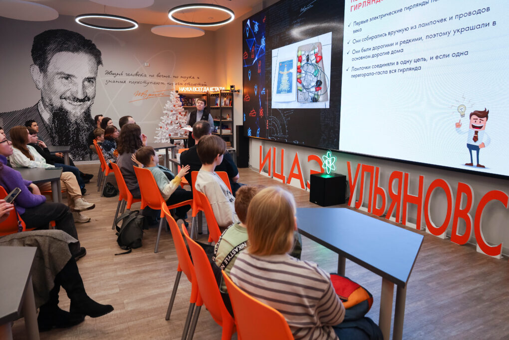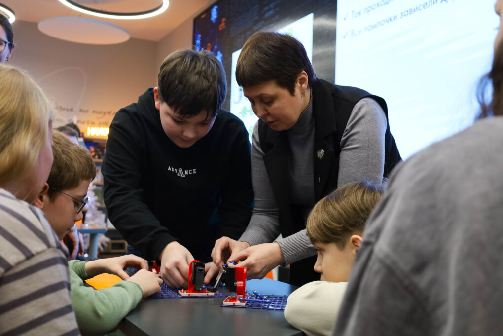 В первых гирляндах лампочки соединялись в одну цепь, и если одна перегорала, гасла вся гирлянда. Этот принцип, по словам лектора, напрямую связан с понятием электрической цепи — замкнутого пути, по которому движется ток. Дополнением к лекции стал наглядный опыт: с помощью специального конструктора участники собирали собственные электрические цепи — прототипы ёлочных гирлянд, наблюдая, как замыкание и разрыв отдельных участков влияют на работу всей системы.