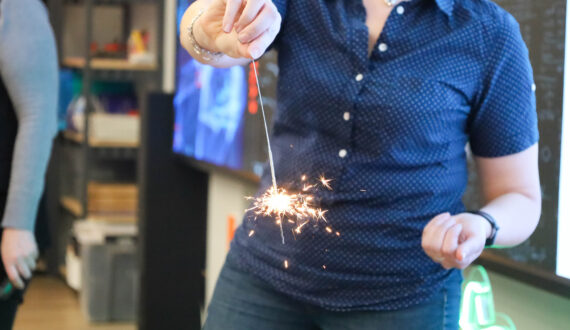 Разобравшись с устройством электрических гирлянд, перешли к ещё одному неотъемлемому атрибуту праздника — бенгальским огням. Несмотря на высокую температуру искр, они не обжигают кожу. «Искры очень маленькие и быстро остывают в воздухе, а тепла в них недостаточно, чтобы причинить ожог. Кроме того, металлический стержень плохо проводит тепло к руке. Само же свечение — результат быстрой химической реакции, в ходе которой выделяются свет и тепло», — пояснила эксперт.
