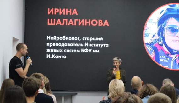Затем выступила Ирина Шалагинова – нейробиолог, старший преподаватель Высшей школы живых систем БФУ им И. Канта. Ирина Геннадьевна рассказала, что нервные клетки – не как клетки крови, они не делятся. И предупредила слушателей, что нужно беречь нервные клетки, нервные клетки погибают. Причём в первые годы жизни очень сильно умирают. И если они не активно это делают, есть исследования, что это приводит к таким отклонениям, как шизофрения, аутизм. Но отметила, что новые нервные клетки всё-таки появляются в области желудочков мозга.