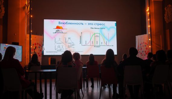 Что такое влюблённость? Вместе со зрителями спикер рассуждала о том, что влюблённость – это не любовь и не страсть. «Может быть, влюблённость – это болезнь? В своем выступлении я покажу, как это заболевание связано с нашей иммунной системой», — начала спикер.