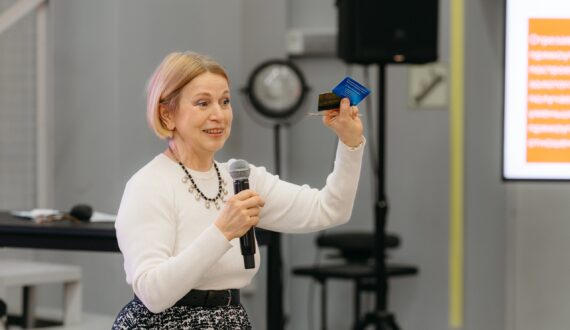 Спикер привела примеры золотого сечения в геометрических фигурах. «Отрезав квадрат от прямоугольника, построенного по принципу золотого сечения, мы получаем новый, уменьшенный прямоугольник с тем же отношением сторон. Например, наши банковские карты — это пример идеальных прямоугольников», — рассказала учёный.
