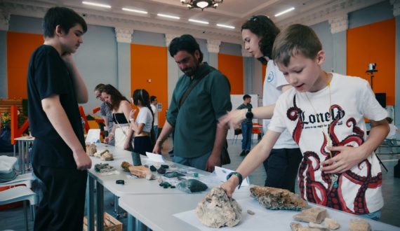 Затем зрители переместились в ИЦАЭ, где гостей вечера ждало множество интерактивных площадок. Так, можно было рассмотреть через бинокуляр настоящие окаменелости, покопаться в чемоданчике палеонтолога, увидеть домашние коллекции минералов и посмотреть видеохроники с раскопок.