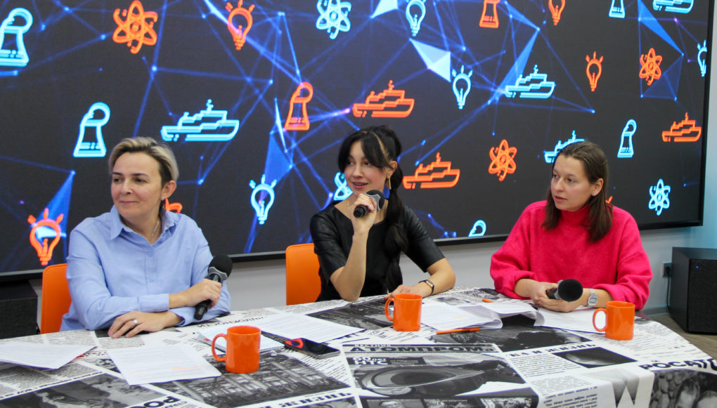 Тему «Где правда?» обсудили Марина Смольникова, кандидат биологических наук, руководитель группы молекулярно-генетических исследований НИИ медицинских проблем Севера, руководитель проекта базовых школ РАН в гимназии №13 «Академ»; Анастасия Тамаровская, научный фотограф, специалист службы научных коммуникаций Красноярского научного центра СО РАН; Яна Горина, кандидат фармацевтических наук, доцент кафедры биологической химии с курсом медицинской, фармацевтической и токсикологической химии КрасГМУ; Анна Чеботарёва, стендап-комик, участница проектов «Открытый микрофон», «Stand up Лига» и «Женский стендап».