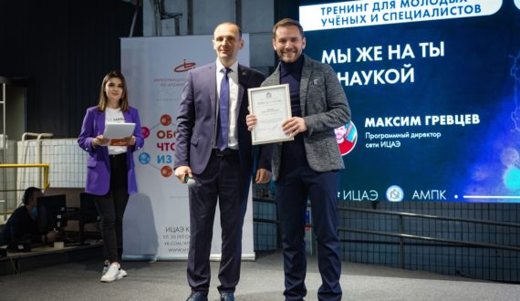 Тренинг «МЫ же на ТЫ с наукой» состоял из двух блоков. Первый образовательный блок провел программный директор сети Информационных центров по атомной энергии (ИЦАЭ) Максим Гревцев. Он рассказал о деятельности сети ИЦАЭ и форматах проводимых научно-популярных мероприятий: «Научный холодильник», «Суд на супергероями», «Разберем на атомы» и многих других, а также о том, чем центр может быть полезен курянам, и как они, в свою очередь, могут быть полезны центрам.