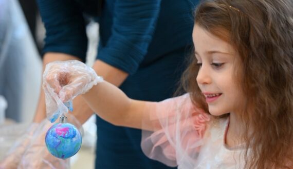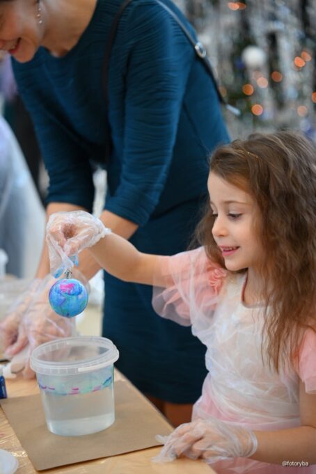 Мастер-класс «Разноцветный Новый год» помог малышам и школьникам создать уникальное ёлочное украшение. Каждый желающий смог раскрасить игрушку и забрать её с собой в качестве сувенира.