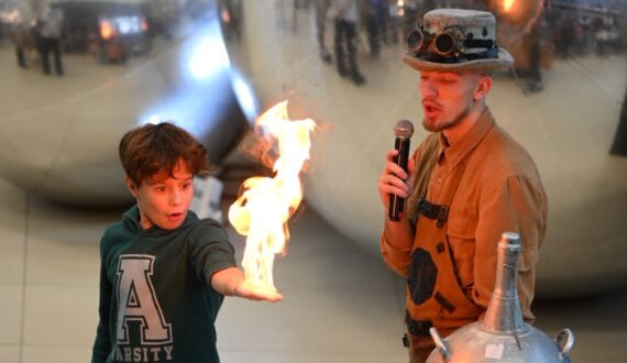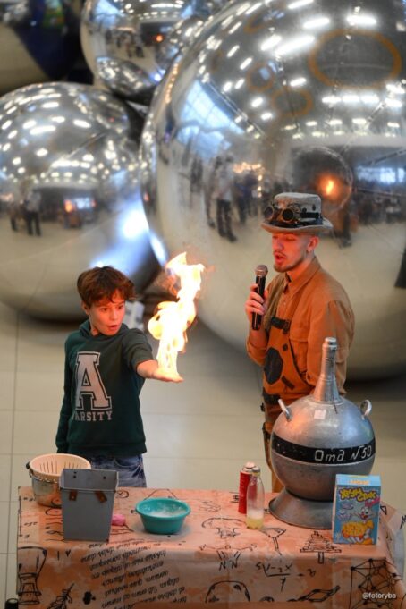 На площадке каждый ребёнок нашёл занятие по душе: инженерные игры-головоломки, опыты и эксперименты, шоу, рисование, интерактивы и викторины.