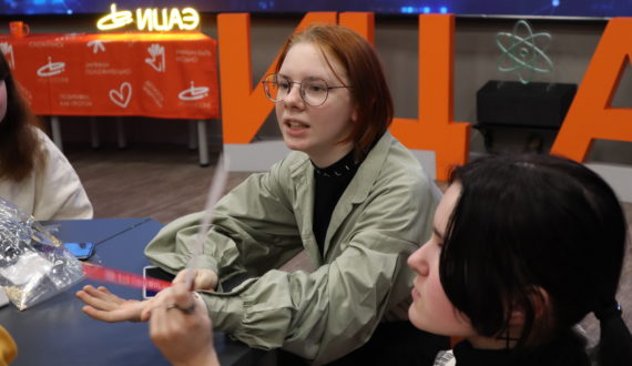 Завершился телемост фирменной интеллектуальной игрой «Адреналин». Команды школьников Мурманска и Владимира соревновались не только на собственных площадках, но и между городами. Вопросы игры были посвящены кибербезопасности, технологиям и особенностям регионов. Не обошлось и без вопросов об атомпроме.