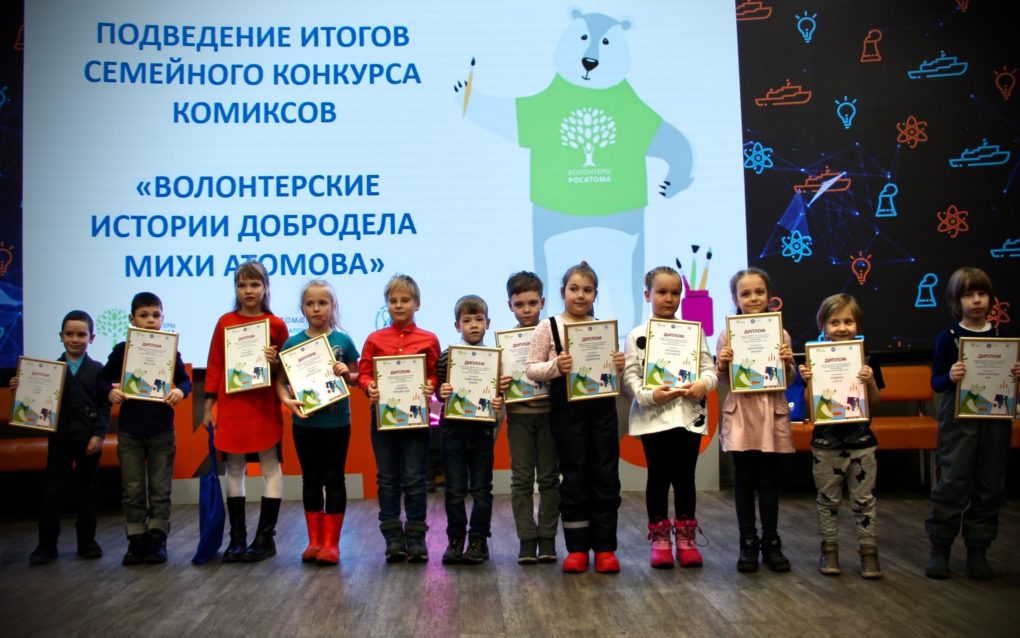 На борту первого в мире атомного ледокола «Ленин» в Информационном центре по атомной энергии (ИЦАЭ) Мурманска прошла церемония награждения участников семейного конкурса комиксов «Волонтёрские истории добродела Михи Атомова».
