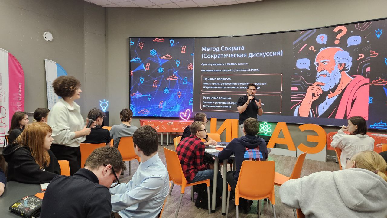 Чем отличается сократическая дискуссия от модели аргументации Стивена Тулмина и как усилить свою аргументацию, узнали участники турнира по дебатам «Убеди меня» на мастер-классе, который прошёл 10 ноября в Информационном центре по атомной энергии (ИЦАЭ) Мурманска.