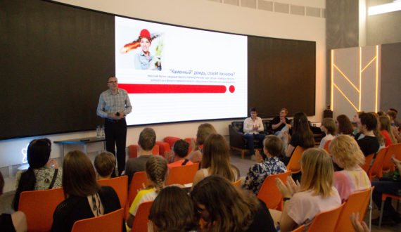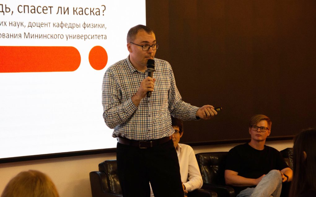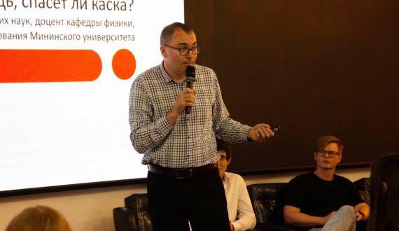 В завершение вечера с докладом «Каменный дождь, спасет ли каска?»  выступил Николай Лапин, кандидат физико-математических наук, доцент кафедры физики, математики и физико-математического образования Мининского университета. Николай рассказал о метеоритах и их влиянии на Землю, а также о том, могут ли астероиды и кометы представлять угрозу для всего человечества.