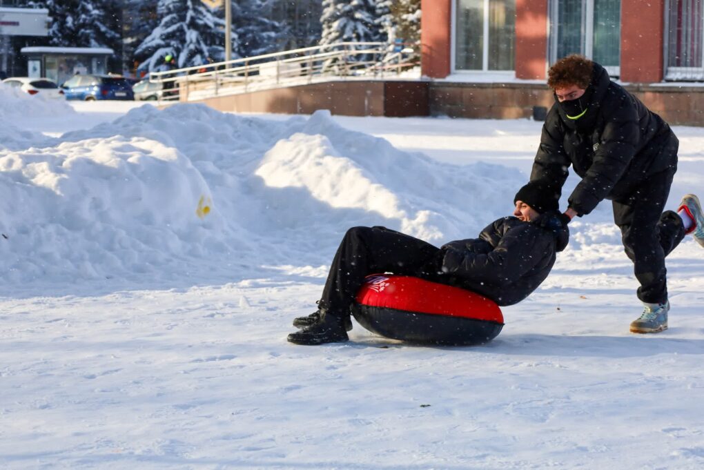 На площади перед зданием Обнинского молодёжного центра, где проходил день студента, вопреки морозу, было жарко. Для гонок на «ватрушках» от команды требовалось по 2 человека: один должен был усидеть на тюбинге, пока второй толкал его по трассе. Побеждали те, кто приходил к финишу первым. А для построения сугроба в ход шло буквально всё: участники приносили заледеневшие куски снега в руках, пакетах и вёдрах.