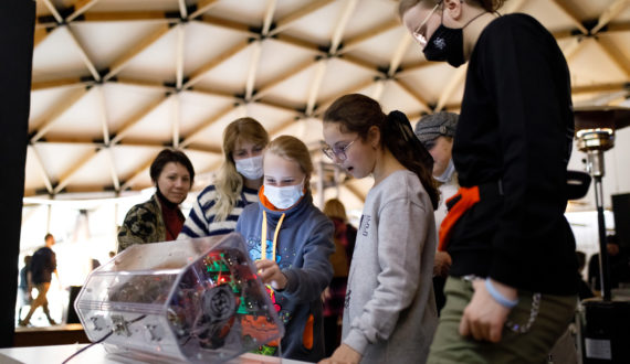 Вечером прошло научное ток-шоу «Квадрат эволюции», где скрипач Никита Дёмин и ведущий инженер лаборатории реакторных материалов и внутриреакторного контроля Ленинградской АЭС Дмитрий Розидеев рассказали об эволюции атомной отрасли в России и об эволюции скрипки, а также её осмыслении в музыке.