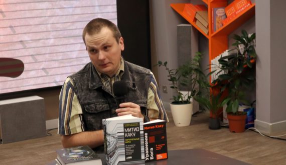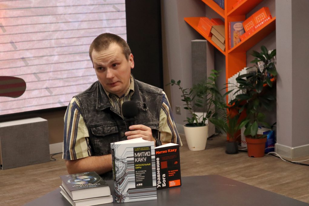 Когда все даты стояли на своих местах, а победители были определены, началась долгожданная часть вечера – первое собрание книжного клуба «Атомные страницы», на котором гости обсудили книгу Митио Каку «Уравнение Бога. В поисках теории всего» вместе с Антоном Шейкиным — кандидатом физико-математических наук, доцентом кафедры физики высоких энергий и элементарных частиц СПбГУ.