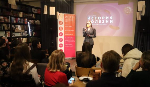 Два эксперта-врача рассмотрели тему «История болезни» с точек зрения разных направлений медицины в ходе научно-популярного шоу Public Talk, которое организовал 29 февраля на площадке арт-пространства «Книги и кофе» Информационный центр по атомной энергии (ИЦАЭ) Санкт-Петербурга.