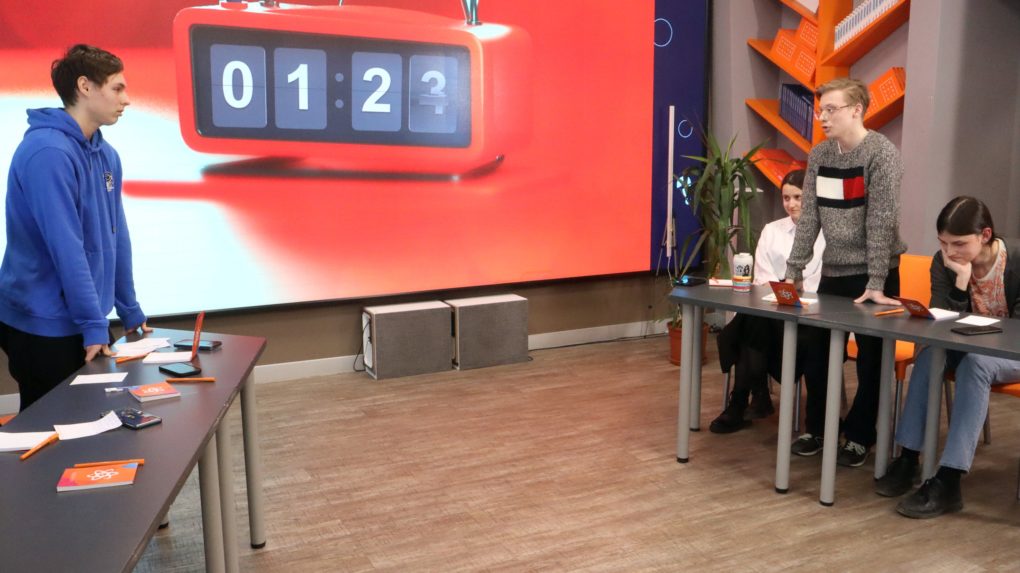 В новом проекте для школьников «Дебаты: убеди меня» завершился первый этап, прошедший в ИЦАЭ Санкт-Петербурга 26 марта. В финале этапа команды соперничали за первое место, а судьи выбирали победителя.