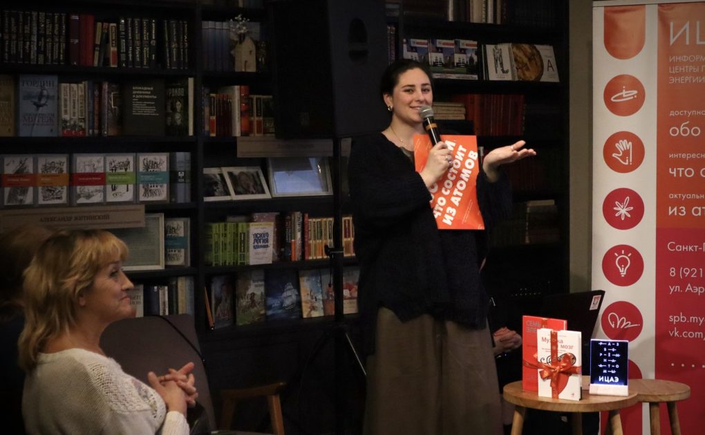 Научно-популярное ток-шоу «Разберём на атомы» – формат, разработанный в сети ИЦАЭ. Трое экспертов разного профиля разбирают одну и ту же тему, а после их выступлений зрители могут задать вопросы спикерам.