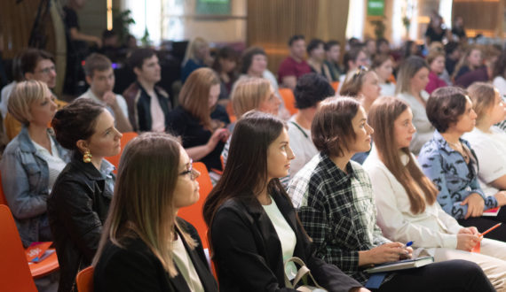 Харизматичный ведущий Арсений Ашомко зарядил и разогрел публику перед выступлением спикеров.