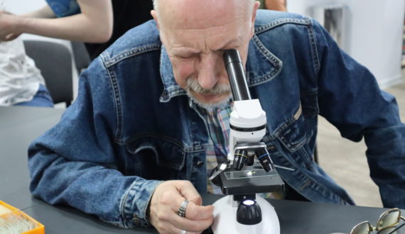 В это же время в Калининграде руководитель магазина оптической техники «Четыре глаза» Станислав Чеченин провёл мастер-класс по работе с микроскопами. Посетители узнали, как и что можно увидеть с помощью обычного микроскопа, рассмотрели инфузории и другие микроорганизмы, обитающие в воде Нижнего озера, а также пристально изучили привычные офисные вещи: пыльцу цветка, кофе, сахар, напечатанный на принтере текст, волокна ваты. Дальше перешли к изучению препаратов с помощью стандартных предметных стекол и даже самостоятельно изготовили несколько несложных учебных материалов.