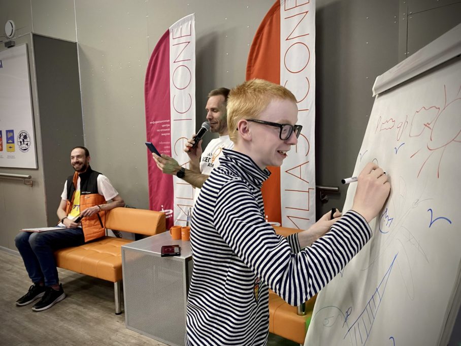 Зоолог, астрофизик и креативщик на площадках ИЦАЭ трёх городов не только провели увлекательные мини-лекции и ответили на острые вопросы публики. Посетителей телемоста также ждали необычные индивидуальные и групповые активности, помогающие развивать креативное мышление.