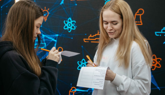 Развитие атомной темы продолжилось в игровой форме – юные волонтёры делали ставки на знания в азартной командной игре «Адреналин» и отвечали на вопросы про космос, химию, физику и многое другое.